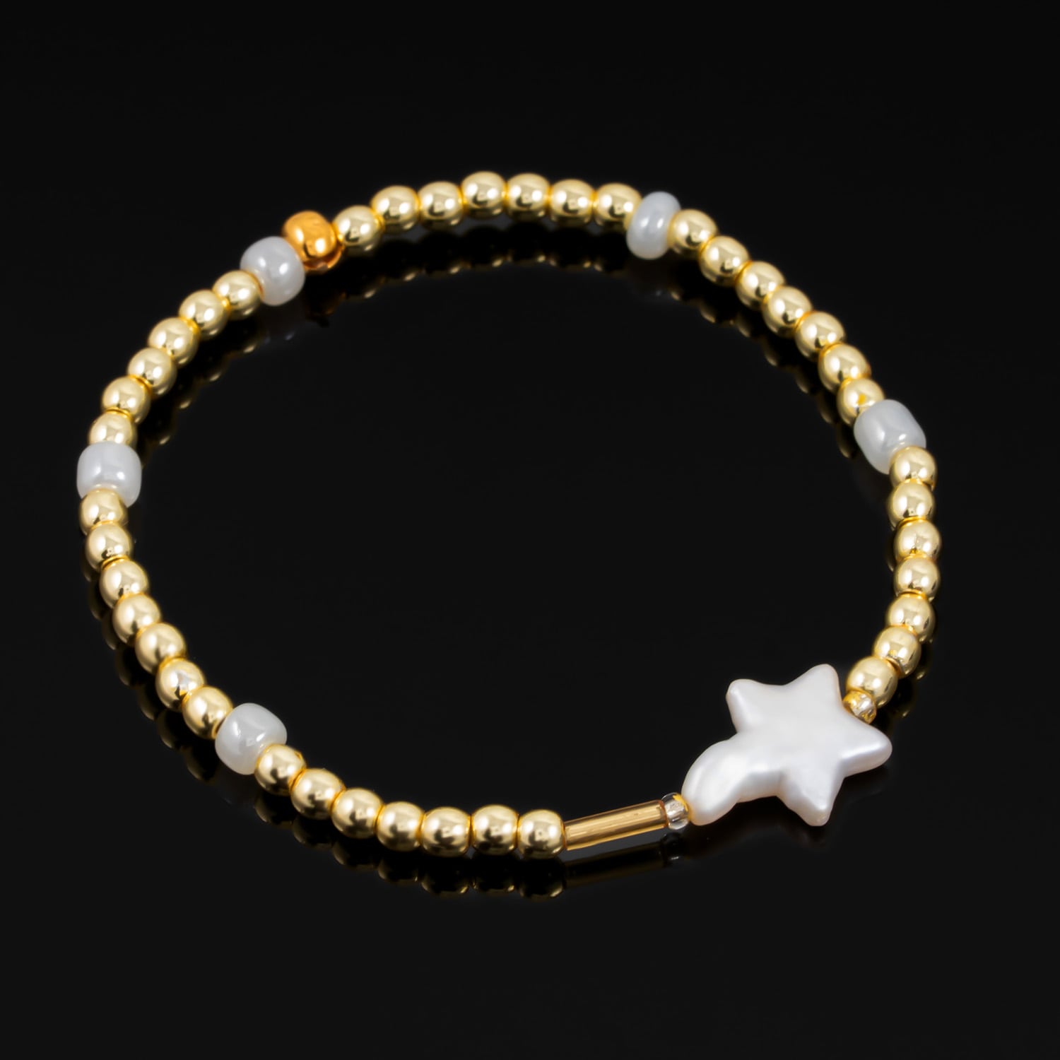 Each Cometta Bracelet Mini features delicate gold-toned hematite and a singular, one of a kind, star-shaped freshwater pearl, making every bracelet uniquely yours.
