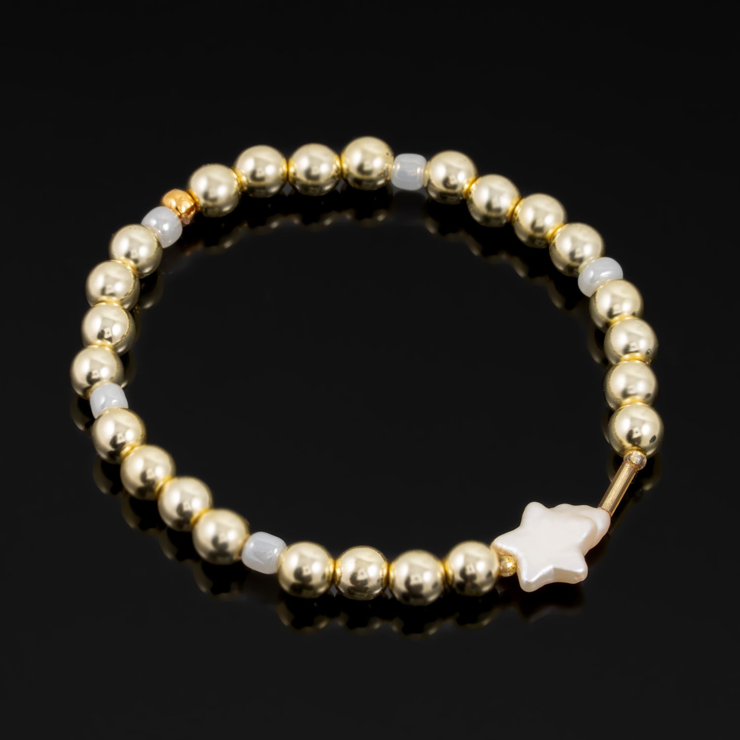 Each Cometta Bracelet Big showcases bold gold-tones hematite and a singular, one of a kind, star-shaped freshwater pearl, making every bracelet uniquely yours.